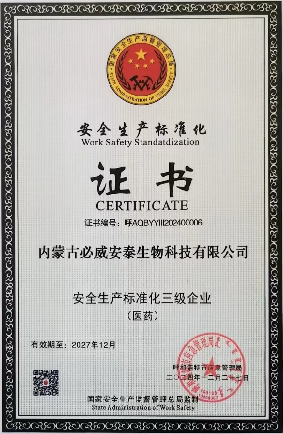 必威安泰取得“安全生產(chǎn)標(biāo)準(zhǔn)化三級(jí)企業(yè)”證書